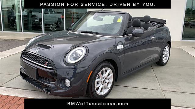 BMW of Tuscaloosa presents this 2019 MINI Cooper S in Gray Metallic exterior with Carbon Black interior. The Vehicle is equipped with 4-Wheel Disc Brakes, 6 Speakers, ABS brakes, Active Cruise Control, Active Driving Assistant, Air Conditioning, Alloy wheels, AM/FM radio, AM/FM Stereo, Auto-Dimming Interior & Exterior Mirrors, Automatic Climate Control, Black Checkered Interior Surface, Body Color Mirror Caps, Brake assist, Bumpers: body-color, Carbon Black Color Line, Comfort Access Keyless Entry, Convertible roof lining, Convertible Wind Deflector, Delay-off headlights, Driver door bin, Driver vanity mirror, Dual front impact airbags, Dual front side impact airbags, Electronic Stability Control, Emergency communication system, Exterior Parking Camera Rear, Four wheel independent suspension, Front anti-roll bar, Front Bucket Seats, Front Center Armrest w/Storage, Front fog lights, Front reading lights, Fully automatic headlights, Glass rear window, harman/kardon® Logic 7® Digital Surround, Heated door mirrors, Heated Front Seats, Illuminated entry, Integrated roll-over protection, John Cooper Works Leather Steering Wheel, Knee airbag, Leather steering wheel, LED Fog Lights, LED Headlights w/Cornering Lights, Low tire pressure warning, MINI Assist eCall, MINI TeleServices, Occupant sensing airbag, Outside temperature display, Overhead console, Park Distance Control, Parking Assistant, Passenger door bin, Passenger vanity mirror, Piano Black Exterior, Power convertible roof, Power door mirrors, Power moonroof, Power steering, Power windows, Power-Folding Mirrors, Radio data system, Rain sensing wipers, Rear anti-roll bar, Rear window defroster, Rear window wiper, Remote keyless entry, SensaTec Leatherette Upholstery, SiriusXM Satellite Radio, Speed control, Speed-sensing steering, Speed-Sensitive Wipers, Split folding rear seat, Sport Leather Steering Wheel, Sport Seats, Sport steering wheel, Steering wheel mounted audio controls, Tachometer, Telescoping steering wheel, Tilt steering wheel, Traction control, Trip computer, Variably intermittent wipers, Wheels: 16"" x 6.5"" Loop Spoke Silver Alloy, White Turn-Signal Lights, and Without Additional Chrome Interior Trim.Call Today to Schedule your VIP Appointment: 205-345-9811. 2019 MINI Cooper S