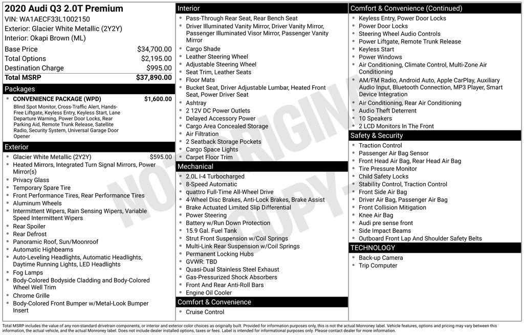 Recent Arrival! 2020 Audi Q3 Premium quattro Clean CARFAX.Discover the difference at Audi Mobile, proudly serving Mobile, Daphne, Fairhope, Spanish Fort, Gulf Shores, Biloxi, and the entire Gulf Coast region. Conveniently located in the heart of Mobile, Alabama, our 13-acre campus offers one of the area’s largest selections of new Audi models and premium pre-owned vehicles. At Audi Mobile, we believe buying a vehicle should be simple, transparent, and enjoyable. That’s why we created the Carlock Clear Program—the only way to buy a car with integrity. One client advisor guides you through the process from start to finish, and you’ll always get the best price upfront with no hassle, no games, and no surprises. Whether you’re driving in from Pensacola, Pascagoula, or right here in Mobile, you’ll be greeted with warm Southern hospitality and a commitment to making your experience seamless. Audi Mobile isn’t just a dealership—it’s your trusted automotive partner on the Gulf Coast.Stop by and experience the Audi of Mobile difference at: Audi of Mobile 1445 E Interstate 65 Service Rd S, Mobile, AL 36606 Call us at 833-617-7951 Visit us at https://www.audimobileal.com/ to browse inventory or get directionS.