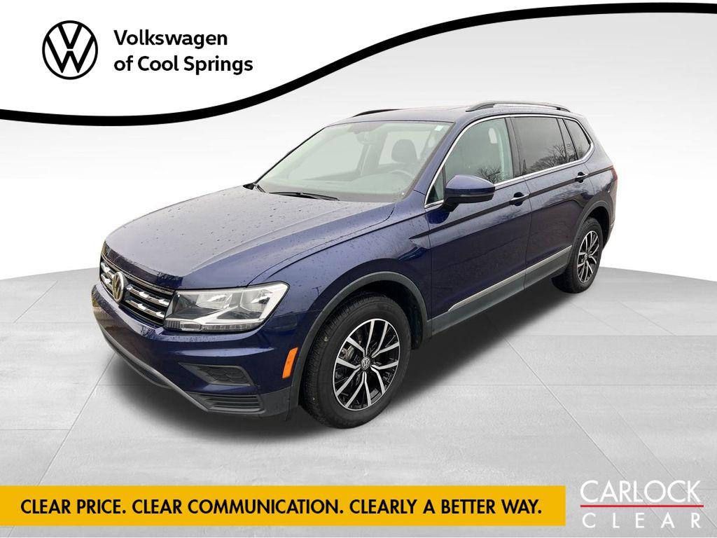 Discover the perfect blend of style, capability, and technology in this 2021 Volkswagen Tiguan 2.0T SE. This well-equipped SUV is ready to elevate your driving experience and accommodate your every need.Boasting a striking Blue exterior, this Tiguan comes equipped with a host of premium features that set it apart. Key highlights include:• Panoramic Sunroof Package• 3rd Row Seat Package• Extended Range Remote Engine Start• 3-Row Rubber Monster Mats w/Logo Kit (Set of 5)• Heavy Duty Trunk Liner w/VW CarGo Blocks• Combination Assistance KitUnder the hood, the Tiguan is powered by a 2.0L TSI DOHC engine paired with an 8-Speed Automatic with Tiptronic transmission and Volkswagen's impressive 4MOTION all-wheel-drive system. This combination delivers a smooth, confident ride with an EPA-estimated 21 MPG in the city and 27 MPG on the highway.The interior of this Tiguan is designed with your comfort and convenience in mind. Enjoy the luxurious Perforated V-Tex Leatherette Seating Surfaces, Heated Front Comfort Seats, and a host of advanced technology features, including the MIB3 Composition Media infotainment system, SiriusXM with 360L, and the VW Car-Net emergency communication system.With its spacious 3-row seating, generous cargo capacity, and versatile utility, this Tiguan is the perfect companion for your family adventures, weekend getaways, and everything in between. Experience the perfect balance of style, performance, and functionality in this exceptional Volkswagen Tiguan.As a Volkswagen Certified Pre-Owned vehicle, this Tiguan has undergone a rigorous 100+ point inspection and comes with a comprehensive warranty and roadside assistance package for your peace of mind. Discover the confidence and value that come with this certified pre-owned Tiguan.Don't miss your opportunity to make this impressive Tiguan your own. Visit our showroom today and let us demonstrate how this exceptional SUV can enhance your driving experience.