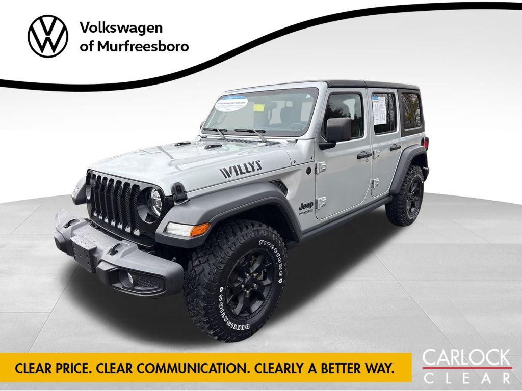 Discover the ultimate off-road companion in the 2022 Jeep Wrangler Unlimited Willys. This rugged and capable SUV is ready to take on any adventure, whether you're conquering the trails or navigating the city streets. With its impressive 2.0L I4 DOHC engine, 8-speed automatic transmission, and 4-wheel drive system, this Wrangler Unlimited Willys delivers exceptional performance and uncompromising capability.Highlights of this Wrangler Unlimited Willys include:• QUICK ORDER PACKAGE 22W WILLYS• BLACK 3-PIECE HARD TOP• COLD WEATHER GROUP (Heated Steering Wheel, Heated Front Seats)• TECHNOLOGY GROUP (Air Conditioning with Auto Temp Control, SiriusXM Satellite Radio)• CONVENIENCE GROUP (Universal Garage Door Opener)• SiriusXM Satellite Radio• Air Conditioning with Auto Temperature Control• Air Filtering• Front 1-Touch Down Power Windows• Remote Keyless Entry• Security Alarm• Speed Sensitive Power Locks• Universal Garage Door OpenerDesigned to conquer the toughest terrain, this Wrangler Unlimited Willys is equipped with a host of off-road-focused features. The 4-wheel drive system, anti-spin differential rear axle, and Jeep Trail Rated kit ensure you can tackle any obstacle with confidence. The Corning Gorilla Glass and deep tint sunscreen windows provide added protection and visibility, while the LED headlamps and fog lamps illuminate your path.Inside, the Wrangler Unlimited Willys offers a well-appointed and comfortable cabin. The heated steering wheel and front seats, along with the 7-inch TFT color display, provide a premium driving experience. The split-folding rear seat and ample cargo space make it easy to accommodate your gear and passengers.Whether you're seeking an adventure-ready SUV or a versatile daily driver, the 2022 Jeep Wrangler Unlimited Willys is the perfect choice. Experience the unparalleled capability and refined features that make this Wrangler Unlimited Willys a true standout in its class. Visit our showroom today and let us demonstrate why this Jeep is the perfect fit for your lifestyle.