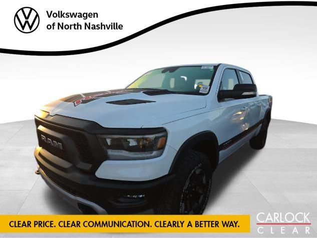 2022 Ram 1500 Rebel115V Auxiliary Rear Power Outlet, 12"" Touchscreen Display, 2-Door Passive Entry, Front Door Locks, 4G LTE Wi-Fi Hot Spot, Air Conditioning ATC w/Dual Zone Control, Apple CarPlay, Auto-Dimming Exterior Driver Mirror, Black Premium Power Mirrors (GUL), Bluetooth Handsfree Phone & Audio, Body Color Door Handles, Connectivity - US/Canada, Digital Rearview Mirror, Exterior Mirrors Courtesy Lamps, Exterior Mirrors w/Supplemental Signals, Foam Bottle Insert (Door Trim Panel), For More Info, Call 800-643-2112, Fully automatic headlights, Google Android Auto, Heads-Up Display, Heated Front Seats, Heated Steering Wheel, Integrated Center Stack Radio, LED CHMSL Lamp, Media Hub w/2 Charge Only USBs, ParkSense Front/Rear Park Assist w/Stop, Power Adjustable Pedals, Quick Order Package 28W Rebel, Radio: Uconnect 5 W w/8.4"" Display, Rain Sensitive Windshield Wipers, Rear Dome w/On/Off Switch Lamp, Rear Underseat Compartment Storage, Rear Window Defroster, Rebel Level B Equipment Group (DISC), Remote Start System, Security Alarm, SiriusXM Radio Service, SiriusXM Satellite Radio, Sun Visors w/Illuminated Vanity Mirrors, Technology Group, Universal Garage Door Opener, USB Host Flip. CARFAX One-Owner.Carlock Volkswagen of North Nashville is pleased to offer this gorgeous-looking 2022 Ram 1500 in Bright White Clearcoat This vehicle has passed our comprehensive inspection.We are the #1 retailer of Volkswagen Certified Pre-Owned vehicles in Tennessee for 2020, 2021, 2022 and 2023. Our Service and Parts Departments are open every Saturday for your needs. Try us today.
