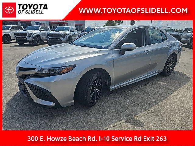 2022 Toyota Camry SE Check out all these great option's ABS brakes, Active Cruise Control, Alloy wheels, Electronic Stability Control, Front dual zone A/C, Heated door mirrors, Illuminated entry, Low tire pressure warning, Remote keyless entry, Traction control, 4-Wheel Disc Brakes, 6 Speakers, Air Conditioning, AM/FM radio: SiriusXM, Apple CarPlay/Android Auto, Auto High-beam Headlights, Automatic temperature control, Brake assist, Bumpers: body-color, Delay-off headlights, Driver door bin, Driver vanity mirror, Dual front impact airbags, Dual front side impact airbags, Emergency communication system: Safety Connect with 1-year trial, Exterior Parking Camera Rear, Fabric Seat Trim w/Sport SofTex, Four wheel independent suspension, Front anti-roll bar, Front Bucket Seats, Front Center Armrest, Front reading lights, Fully automatic headlights, Knee airbag, Occupant sensing airbag, Outside temperature display, Overhead airbag, Overhead console, Panic alarm, Passenger door bin, Passenger vanity mirror, Power door mirrors, Power driver seat, Power steering, Power windows, Radio data system, Radio: AM/FM Audio System, Rear anti-roll bar, Rear seat center armrest, Rear side impact airbag, Rear window defroster, Security system, Speed control, Speed-sensing steering, Split folding rear seat, Spoiler, Steering wheel mounted audio controls, Tachometer, Telescoping steering wheel, Tilt steering wheel, Trip computer, Turn signal indicator mirrors, Variably intermittent wipers, and Wheels: 8.0J x 18"" Black Machined-Finish Alloy. Recent Arrival! 28/39 City/Highway MPGABS brakes, Active Cruise Control, Alloy wheels, Electronic Stability Control, Front dual zone A/C, Heated door mirrors, Illuminated entry, Low tire pressure warning, Remote keyless entry, Traction control.Clean CARFAX.Toyota of Slidell is the leader in customer service on the North shore. Come experience what a great car dealer can be.For directions to Toyota of Slidell Click belowhttp://www.toyotaofslidell.com/slidell-toyota-directions.htm *Picture may not represent actual vehicle. Price varies based on Trim Levels and Options. Certain vehicles listed may not be available, or may have different prices, or be equipped with dealer installed options. See Dealer for in-stock inventory & actual selling price. All prices plus tax, title & license with approved credit. MSRP includes delivery, processing, and handling fees. Dealer doc fee $425.00 not included in price. Prices may be different outside of each advertised period and do not necessarily reflect cash price at any other time.