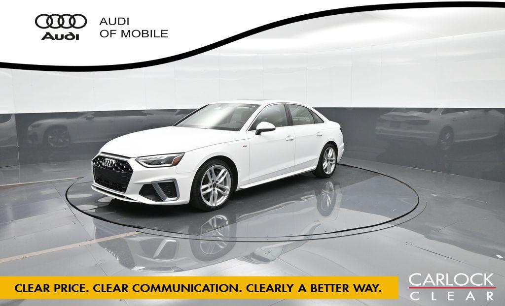 2023 Audi A4 45 S line Premium Plus quattroWE SHIP ANYWHERE IN THE UNITED STATES, JUST ASK., 7-Speed Automatic S tronic, quattro, Black w/Leather Seating Surfaces, 10 Speakers, 2 Rear USB Charge Ports, Adaptive Cruise Control, Air Conditioning, Alarm System w/Motion Sensor, AM/FM radio, Anti-whiplash front head restraints, Audi Active Lane Assist, Audi Advanced Key, Audi Phone Box, Audi Side Assist w/Pre Sense Rear, Audi Virtual Cockpit Plus, Auto High-beam Headlights, Auto-Dimming Exterior Mirrors w/Memory, Bang & Olufsen Sound System w/3D Sound, Brake assist, Bumpers: body-color, Compass, Convenience Package, Driver vanity mirror, Dual front side impact airbags, Electronic Stability Control, Emergency communication system: Audi connect CARE, Exterior Parking Camera Rear, Four wheel independent suspension, Front Bucket Seats, Front dual zone A/C, Front fog lights, Garage door transmitter: HomeLink, Genuine wood dashboard insert, Hands-On Detection Steering Wheel, Heated door mirrors, Heated front seats, Heated Steering Wheel, Leatherette Covered Center Console & Door Armrests, Low tire pressure warning, Memory for Driver's Seat, Outside temperature display, Overhead airbag, Parking System Plus, Power driver seat, Power Folding Exterior Mirrors, Power windows, Premium Plus Package, Radio data system, Radio: Audi Sound System, Rain sensing wipers, Rear air conditioning, Rear reading lights, Remote keyless entry, SiriusXM w/360L, Steering wheel mounted audio controls, Telescoping steering wheel, Top View Camera System, Traction control, Traffic Jam Assist, Variably intermittent wipers, Wheels: 18"" 5-Double-Spoke Design.Discover the difference at Audi Mobile, proudly serving Mobile, Daphne, Fairhope, Spanish Fort, Gulf Shores, Biloxi, and the entire Gulf Coast region. Conveniently located in the heart of Mobile, Alabama, our 13-acre campus offers one of the area’s largest selections of new Audi models and premium pre-owned vehicles. At Audi Mobile, we believe buying a vehicle should be simple, transparent, and enjoyable. That’s why we created the Carlock Clear Program—the only way to buy a car with integrity. One client advisor guides you through the process from start to finish, and you’ll always get the best price upfront with no hassle, no games, and no surprises. Whether you’re driving in from Pensacola, Pascagoula, or right here in Mobile, you’ll be greeted with warm Southern hospitality and a commitment to making your experience seamless. Audi Mobile isn’t just a dealership—it’s your trusted automotive partner on the Gulf Coast.Stop by and experience the Audi of Mobile difference at: Audi of Mobile 1445 E Interstate 65 Service Rd S, Mobile, AL 36606 Call us at 833-617-7951 Visit us at https://www.audimobileal.com/ to browse inventory or get directionS.