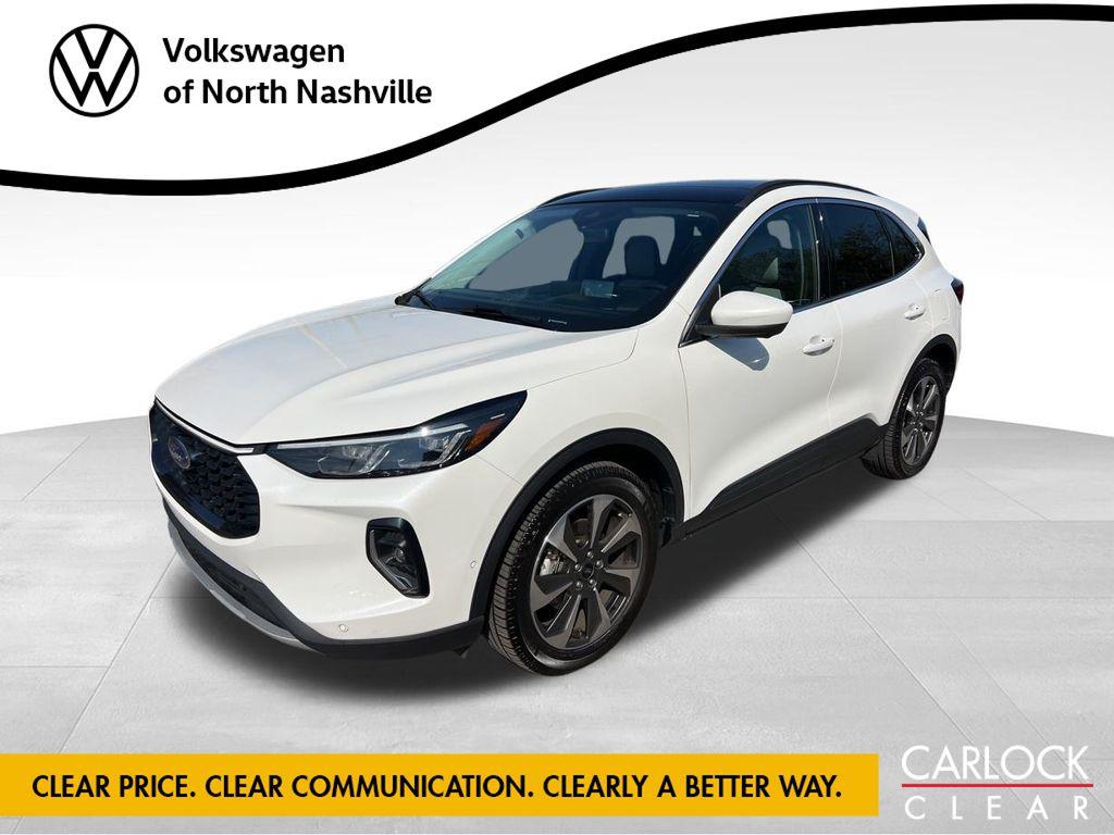 2023 Ford Escape PlatinumAWD, Active Park Assist 2.0, Auto High-beam Headlights, Black Roof-Rack Side Rails, Equipment Group 601A, Exterior Parking Camera Rear, HD Radio, Head-Up Display, Heated front seats, Heated Leather-Trimmed Front Sport Contour Seats, Panoramic Vista Roof, Power Liftgate, Premium Technology Package, Radio: B&O Sound System by Bang & Olufsen. CARFAX One-Owner.Carlock Volkswagen of North Nashville is proud to offer this charming-looking 2023 Ford Escape in Star White Metallic Tri-Coat This vehicle has passed our comprehensive inspection.We are the #1 retailer of Volkswagen Certified Pre-Owned vehicles in Tennessee for 2020, 2021, 2022 and 2023. Our Service and Parts Departments are open every Saturday for your needs. Try us today.