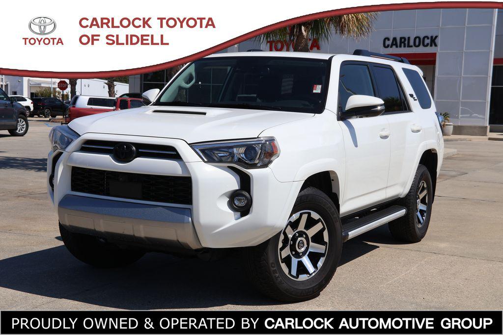 2023 Toyota 4Runner TRD Off-Road Premium Check out all these great option's Moonroof Package (Moonroof w/Tilt Up & Slide), Off Road Premium Package (Garage Door Opener), Exterior Parking Camera Rear, Heated front seats, 3.727 Axle Ratio, 4-Wheel Disc Brakes, 8 Speakers, ABS brakes, Air Conditioning, Alloy wheels, AM/FM radio: SiriusXM, Anti-whiplash front head restraints, Apple CarPlay/Android Auto, Auto High-beam Headlights, Auto-dimming Rear-View mirror, Black Roof Rails, Brake assist, Bumpers: body-color, Compass, Driver door bin, Driver vanity mirror, Dual front impact airbags, Dual front side impact airbags, Electronic Stability Control, Emergency communication system: Safety Connect (1-year trial), Front anti-roll bar, Front Bucket Seats, Front Center Armrest, Front fog lights, Front reading lights, Front wheel independent suspension, Garage door transmitter: HomeLink, Heated door mirrors, Heated Front Bucket Seats, Heated Outside Rear-View Mirrors, Illuminated entry, Knee airbag, Leather Shift Knob, Low tire pressure warning, Navigation System, Occupant sensing airbag, Outside temperature display, Overhead airbag, Overhead console, Panic alarm, Passenger door bin, Passenger vanity mirror, Power door mirrors, Power driver seat, Power passenger seat, Power steering, Power windows, Radio: Premium Audio w/Dynamic Navigation, Rear anti-roll bar, Rear seat center armrest, Rear window defroster, Rear window wiper, Remote keyless entry, Roof rack: rails only, Security system, SofTex Seat Trim, Speed control, Speed-sensing steering, Split folding rear seat, Spoiler, Steering wheel mounted audio controls, Tachometer, Telescoping steering wheel, Tilt steering wheel, Traction control, Trip computer, Turn signal indicator mirrors, Variably intermittent wipers, and Wheels: 17"" Unique 7-Spoke Off-Road Alloy.Dealer Detailed, 160 Point Inspection, Recent Oil Change, Exterior Parking Camera Rear, Garage Door Opener, Heated front seats, Moonroof Package, Moonroof w/Tilt Up & Slide, Off Road Premium Package.Odometer is 15450 miles below market average! CARFAX One-Owner. Clean CARFAX.Toyota of Slidell is the leader in customer service on the North shore. Come experience what a great car dealer can be.For directions to Toyota of Slidell Click belowhttp://www.toyotaofslidell.com/slidell-toyota-directions.htm *Picture may not represent actual vehicle. Price varies based on Trim Levels and Options. Certain vehicles listed may not be available, or may have different prices, or be equipped with dealer installed options. See Dealer for in-stock inventory & actual selling price. All prices plus tax, title & license with approved credit. MSRP includes delivery, processing, and handling fees. Dealer doc fee $425.00 not included in price. Prices may be different outside of each advertised period and do not necessarily reflect cash price at any other time.