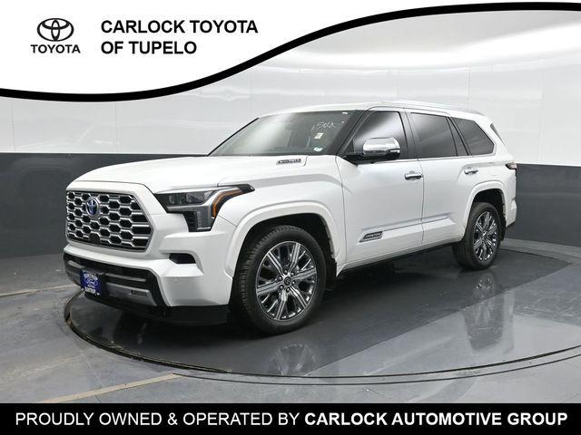 Discover the ultimate in luxury and capability with this 2024 Toyota Sequoia Capstone. This exceptional SUV is more than just a vehicle – it's a statement of refined taste and uncompromising performance.Boasting a stunning off-white exterior, this Sequoia Capstone is equipped with a range of premium features that set it apart from the crowd. Highlights include:• DASH CAM (TMS)• PAINT PROTECTION FILM (TMS)• SPECIAL COLOR• CENTER CONSOLE SAFE (TMS)• Automatic Power Extending Running Boards• Heated Power Auto-Dimming Outside Mirrors• Head Up Display (HUD)Beyond these impressive additions, the Sequoia Capstone offers a wealth of advanced technology and comfort-enhancing amenities. Enjoy the seamless integration of your smartphone with Apple CarPlay and Android Auto, the premium JBL audio system, and the convenience of a power liftgate and moonroof.Under the hood, this Sequoia is powered by a robust V6 Hybrid engine paired with a smooth-shifting 10-speed automatic transmission and capable 4WD system. With an EPA-estimated 19 mpg in the city and 22 mpg on the highway, you'll enjoy exceptional efficiency without sacrificing the power and capability you demand.Safety is also a top priority, with features like the Emergency Communication System, Blind Spot Monitoring, and Rear Cross-Traffic Alert keeping you and your loved ones protected on every journey.Whether you're embarking on a family adventure or simply seeking a refined and versatile SUV, this 2024 Toyota Sequoia Capstone is the perfect choice. Experience the pinnacle of luxury and performance – schedule a test drive today and discover the difference for yourself.