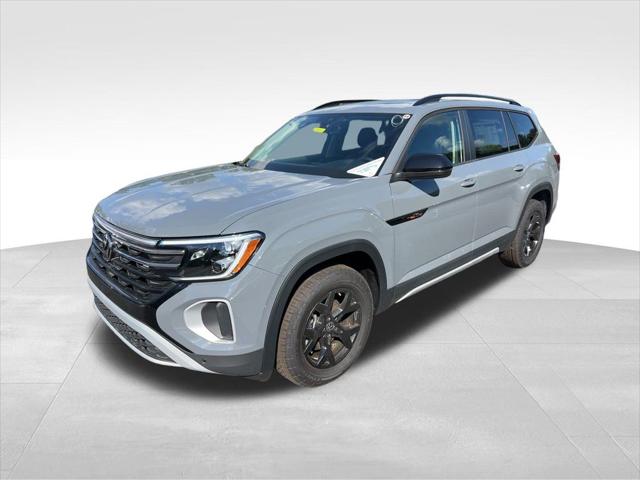 Pure Gray 2025 Volkswagen Atlas 2.0T Peak Edition AWD 8-Speed Automatic with Tiptronic 2.0L TSI 2nd-Row Dual Captain's Chairs, Auto-Dimming Rearview Mirror w/HomeLink Connect, Heavy Duty Trunk Liner w/VW CarGo Blocks, Retractable Privacy Cover for Cargo Area, Roadside Assistance Kit, Rubber Mats Kit (2-row), Volkswagen Logo Puddle Lights, VW Care.