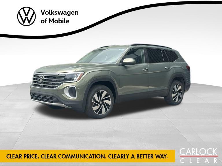 At Carlock Volkswagen Mobile we offer our Carlock Clear Guarantee! Clear Price, Clear Communication, Clearly a Better Way! Get Our Best Price Upfront Work with one Non-Commissioned Advisor from Start to Finish No Pressure, No Surprises.Recent Arrival! CARFAX One-Owner. Clean CARFAX. Avocado Green Pearl 2025 Volkswagen Atlas 2.0T SE w/Technology Titan Black w/Perforated V-Tex Leatherette Seating Surfaces, 3rd row seats: split-bench, 4-Wheel Disc Brakes, 6 Speakers, ABS brakes, Air Conditioning, Alloy wheels, AM/FM radio: SiriusXM with 360L, Auto High-beam Headlights, Automatic temperature control, Brake assist, Bumpers: body-color, Compass, Delay-off headlights, Driver door bin, Driver vanity mirror, Dual front impact airbags, Dual front side impact airbags, Electronic Stability Control, Emergency communication system: VW Car-Net Safe & Secure 5-year, Exterior Parking Camera Rear, Four wheel independent suspension, Front anti-roll bar, Front Bucket Seats, Front Center Armrest, Front dual zone A/C, Front fog lights, Front reading lights, Fully automatic headlights, Heated door mirrors, Heated front seats, Heated steering wheel, Illuminated entry, Low tire pressure warning, Occupant sensing airbag, Outside temperature display, Overhead airbag, Overhead console, Panic alarm, Passenger door bin, Passenger vanity mirror, Power door mirrors, Power driver seat, Power Liftgate, Power steering, Power windows, Radio data system, Rain sensing wipers, Rear air conditioning, Rear anti-roll bar, Rear reading lights, Rear seat center armrest, Rear window defroster, Rear window wiper, Remote keyless entry, Security system, Speed control, Speed-sensing steering, Split folding rear seat, Spoiler, Steering wheel mounted audio controls, Tachometer, Telescoping steering wheel, Tilt steering wheel, Traction control, Trip computer, Turn signal indicator mirrors, Variably intermittent wipers, Ventilated front seats.We're proud to serve local drivers whenever they need a new car, a certified pre-owned automobile, assistance under the hood, erasing an unwanted mark on the exterior, lease deals, and more. Much like a pit crew comes together with engineers and designers to support the driver of a high-flying race car, our team bands together to support you and your car. You can visit us at: https://www.volkswagenmobile.com/ or call us at 251-459-8996.