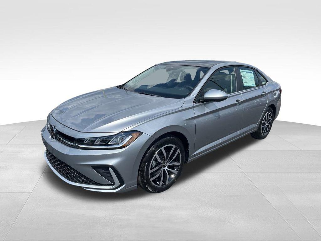 Pyrite Silver Metallic 2025 Volkswagen Jetta 1.5T SE FWD 8-Speed Automatic with Tiptronic 1.5L I-4 DI DOHC Turbocharged Grigio/Titan Black w/CloudTex & V-Tex Leatherette Seat Trim, Auto-Dimming Rearview Mirror w/HomeLink Connect, Heavy Duty Trunk Liner w/VW CarGo Blocks, Power Tilting & Sliding Sunroof, Rubber Monster Mats Kit (Set of 4), Sunroof Package, VW Care.Online price assumes financing with one of our preferred lenders using standard interest rates. The online sale price can not be combined with any Special APR offers from the manufacturer. See dealer for details.