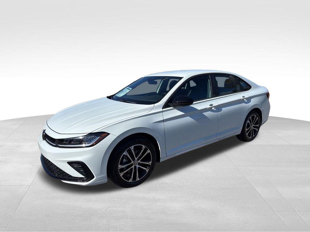 Pure White 2025 Volkswagen Jetta 1.5T Sport FWD 8-Speed Automatic with Tiptronic 1.5L I-4 DI DOHC Turbocharged Titan Black w/Cloth Seat Trim, VW Care.