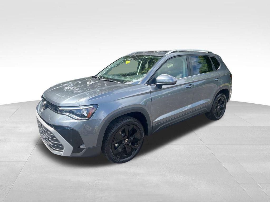 Platinum Gray Metallic 2025 Volkswagen Taos 1.5T SE FWD 8-Speed Automatic with Tiptronic 1.5L I4 Turbocharged DOHC 16V LEV3-SULEV30 174hp Auto-Dimming Rearview Mirror w/HomeLink Connect, Black Wheel Package, Carpeted MojoMats (Set of 4), Panoramic Sunroof Package, VW Care, Wheels: 18"" Black Painted Alloy.