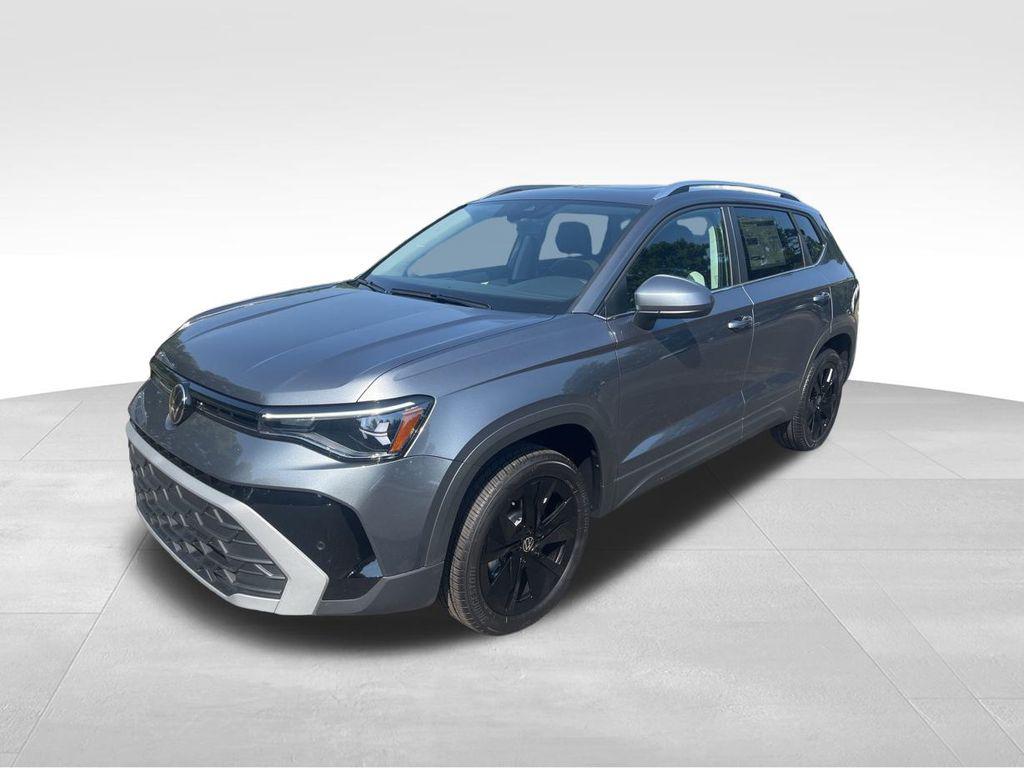 Platinum Gray Metallic 2025 Volkswagen Taos 1.5T SE FWD 8-Speed Automatic with Tiptronic 1.5L I4 Turbocharged DOHC 16V LEV3-SULEV30 174hp Auto-Dimming Rearview Mirror w/HomeLink Connect, Black Wheel Package, Carpeted MojoMats (Set of 4), Panoramic Sunroof Package, VW Care, Wheels: 18"" Black Painted Alloy.