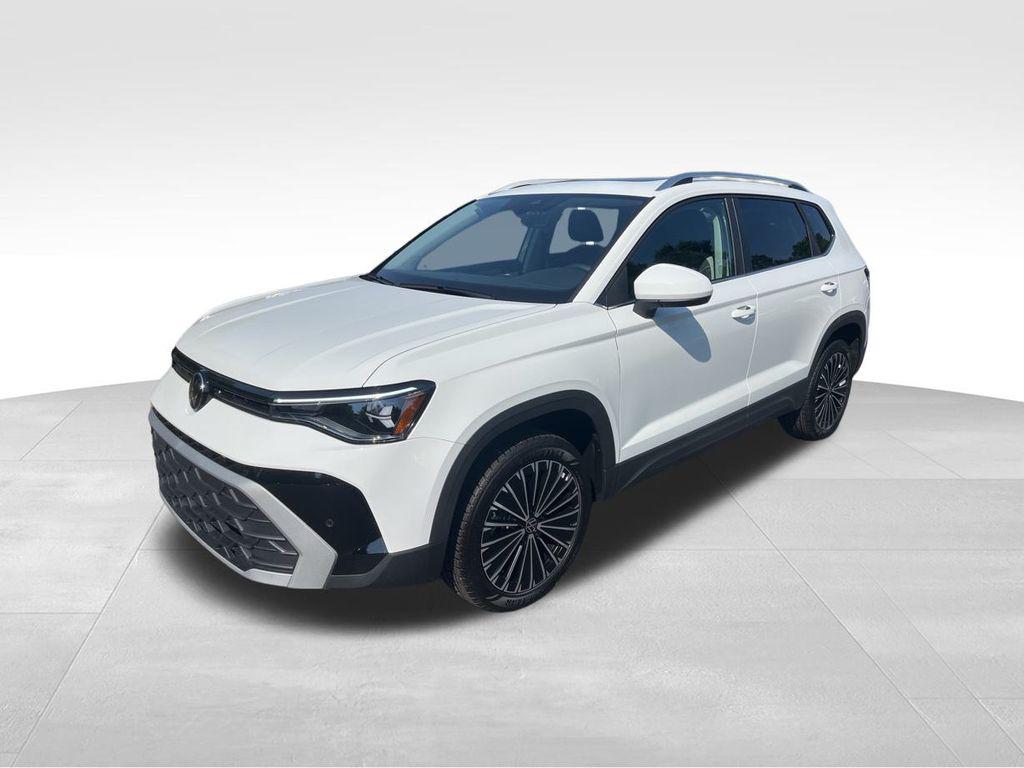 Pure White 2025 Volkswagen Taos 1.5T SE FWD 8-Speed Automatic with Tiptronic 1.5L I4 Turbocharged DOHC 16V LEV3-SULEV30 174hp Auto-Dimming Rearview Mirror w/HomeLink Connect, Panoramic Sunroof Package, Rubber Mats Kit, VW Care.