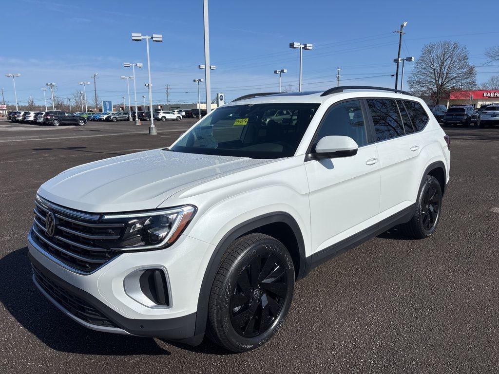Opal White Pearl 2026 Volkswagen Atlas 2.0T SE w/Technology FWD 8-Speed Automatic with Tiptronic 2.0L TSI 2nd-Row Dual Captain's Chairs, Black Wheel Package, Panoramic Sunroof Package, Retractable Privacy Cover For Cargo Area, Roadside Assistance Kit, Rubber Mats Kit (2-Row), Volkswagen Logo Puddle Lights, VW Care, Wheels: 20"" Multi-Spoke Black Painted Alloy.
